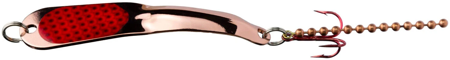 Iron Decoy Steely spoons are constructed from the finest materials in the industry. The high-quality solid brass spoons have a jewelry quality finish. The prismatic design is highly reflective and realistic. The Lazer Sharp hooks by Eagle Claw will ensure a secure hook set. The patent pending ball chain trailer/dressing produces incredible life like action never known in a spoon until now. The ball chain trailer is excellent at causing strikes when vertical jigging through the ice. These Iron Decoy spoons have a very unique action, even with a slow retrieve. The flight and retrieve of these Iron Decoy spoons produce no line twist. The Steely shape, color, length, and weight was specifically designed for Panfish, Crappie, Shad, Trout, Smallmouth Bass, Largemouth Bass, Walleye, Steelhead, Northern Pike, Salmon and Musky.