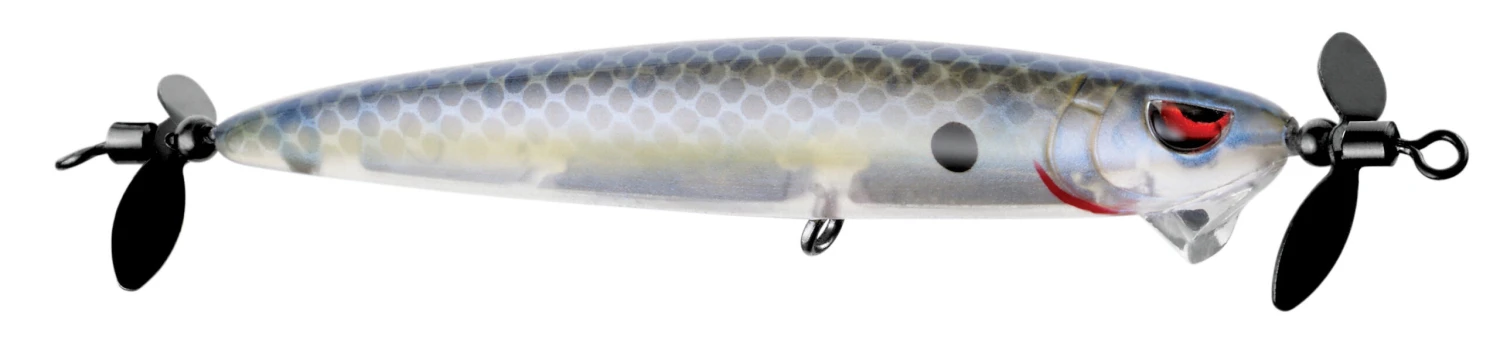 The SPRO Spin John 80 is a 3.14 inch, 5/16 ounce hard finesse propeller lure (aka spybait) designed by B.A.S.S. Elite Series Angler John Crews. The Spin John 80 comes with swivels incorporated into the line tie and the back-hook hanger. These swivels help the bait rock back and forth on as it falls through the water column. Additionally, the rear swivel makes it harder for a fish to get leverage on the bait and throw the hook out of its mouth.