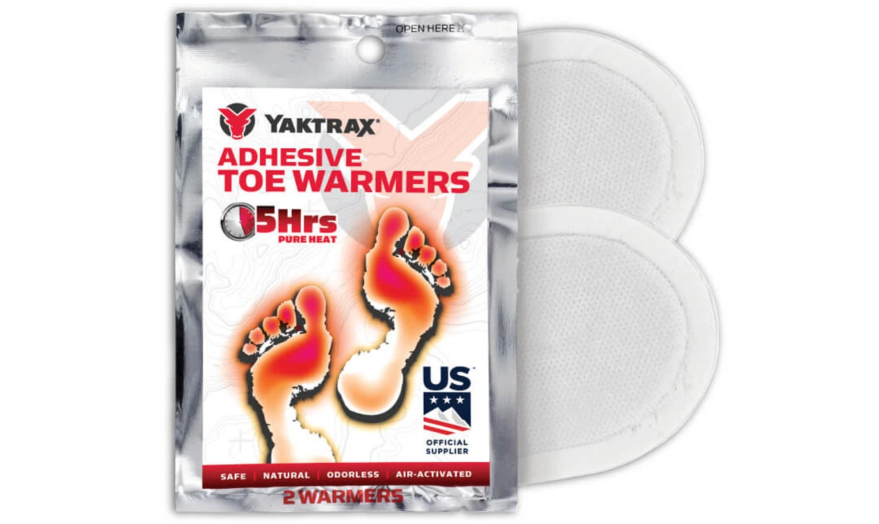 Yaktraxยฎ Adhesive Toe Warmers are a safe, easy, and all-natural solution to painfully cold toes. Once opened and exposed to oxygen in the air, these disposable but environmentally-friendly warmers begin working in just minutes. Apply them directly to the top of your socks to form a radiant barrier of warmth inside your shoes that lasts up to 5 hours. Yaktrax Warmers are the ideal choice for outdoorsman, winter athletes, spectators, and anyone who works or plays outdoors.